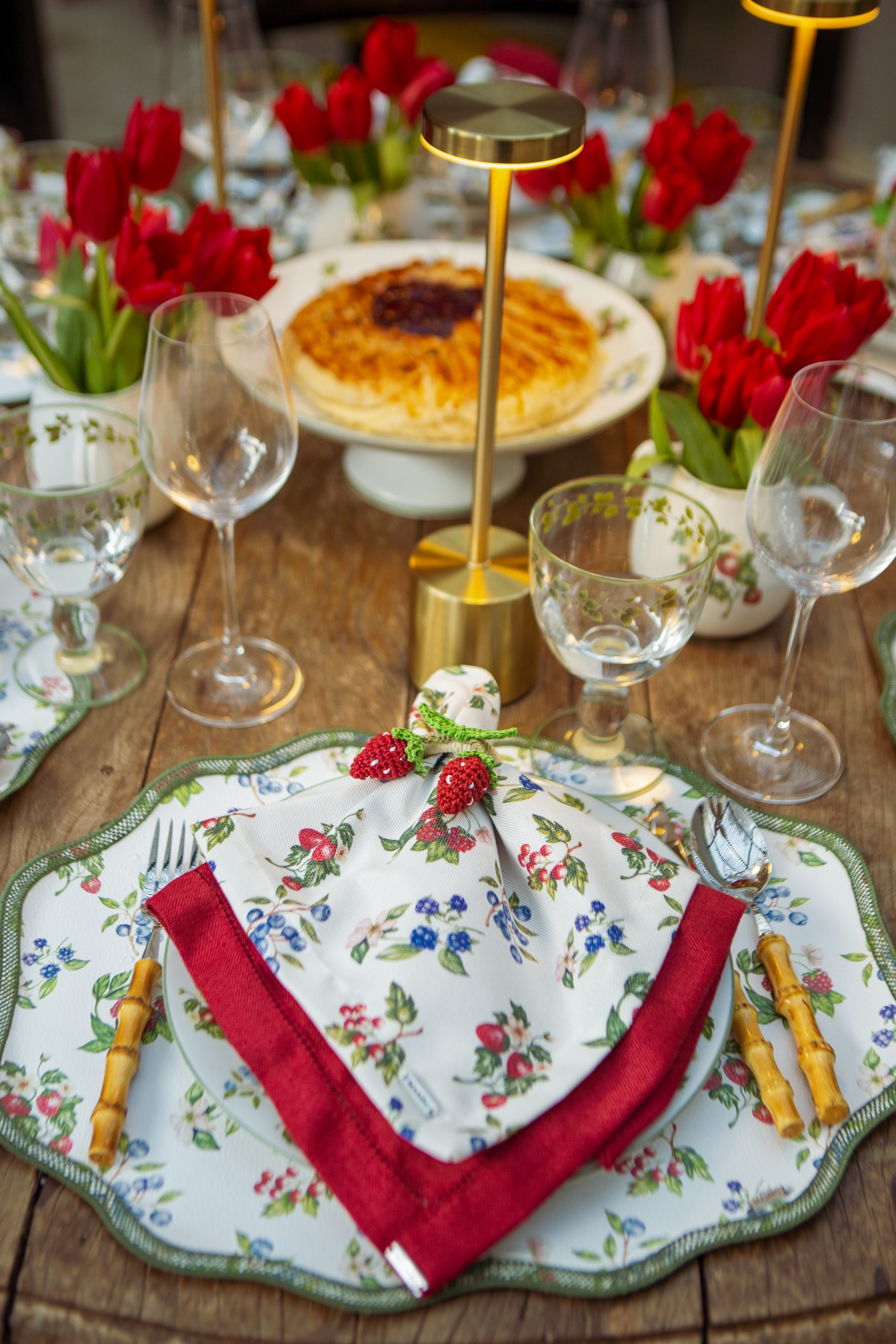 Lugar Americano de formato orgânico produzido em couro ecológico, com bordado em todo o contorno da peça.