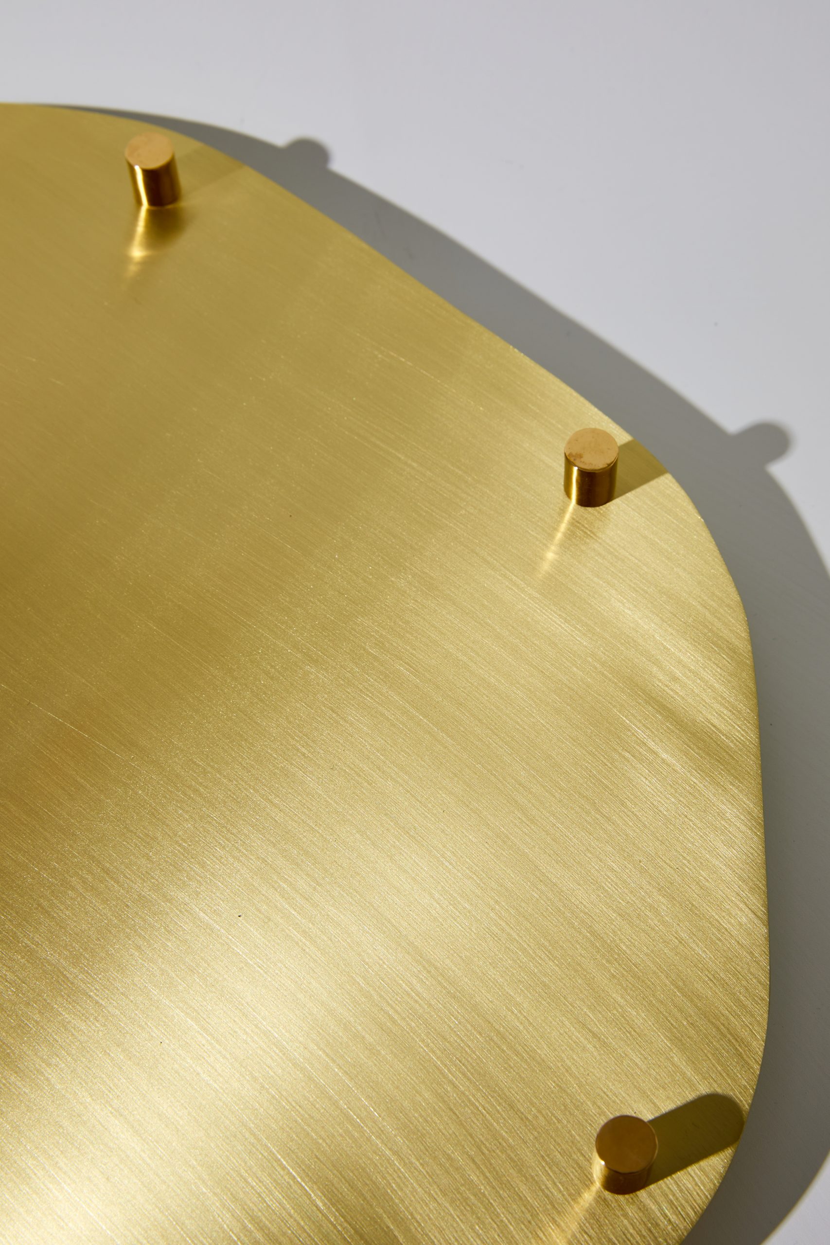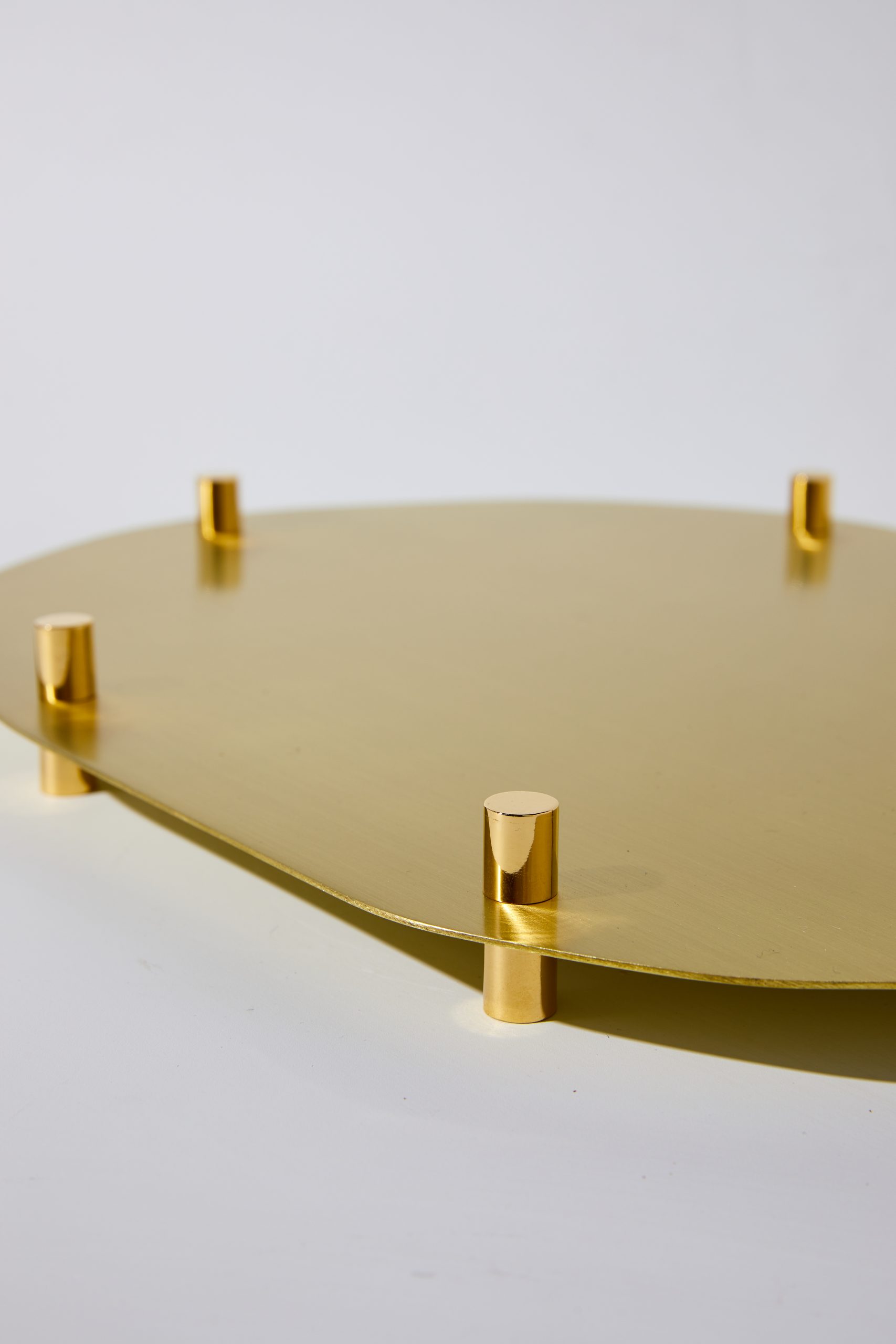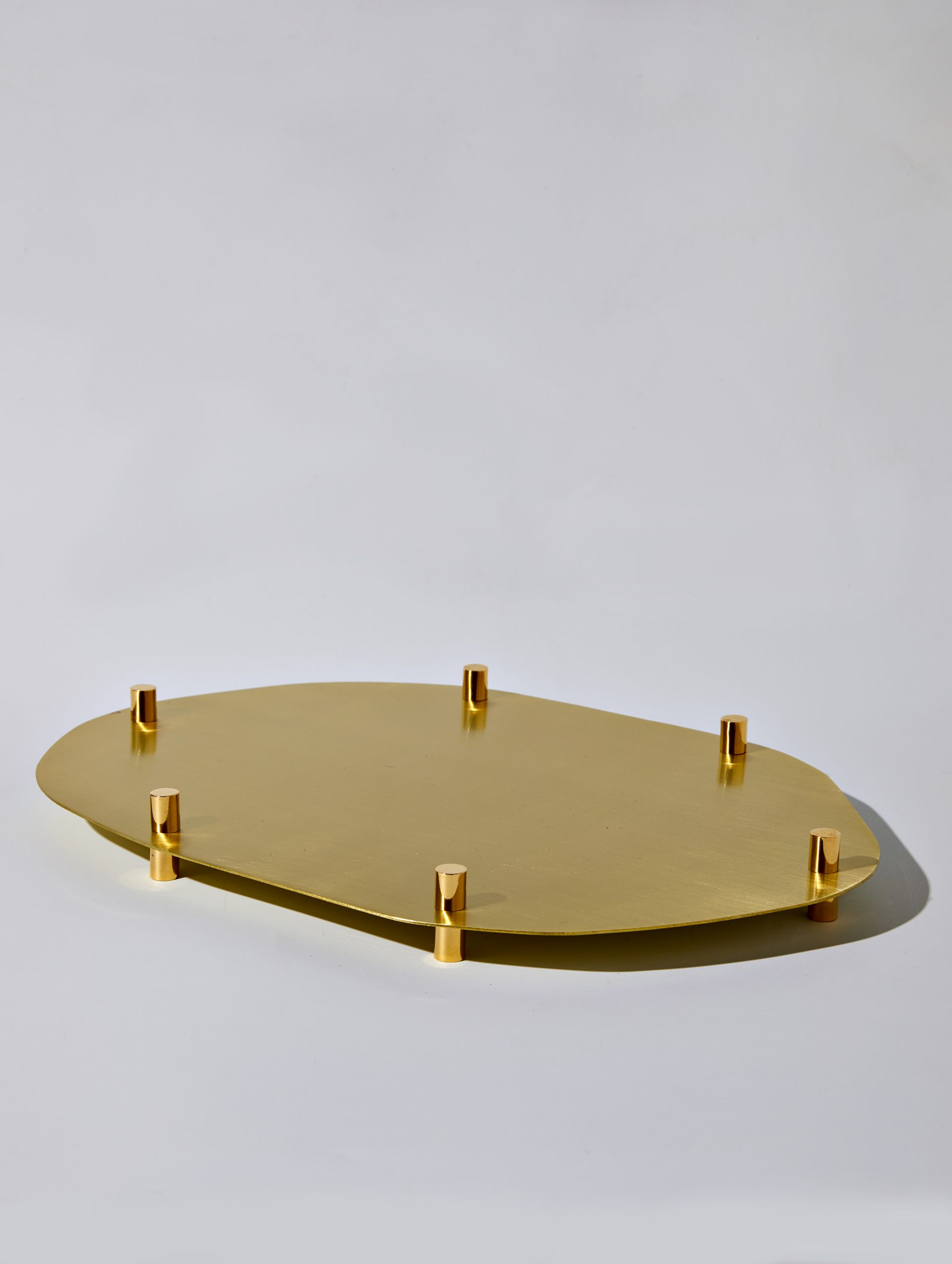 Cada bandeja é feita em latão escovado e recebe um banho de ouro.