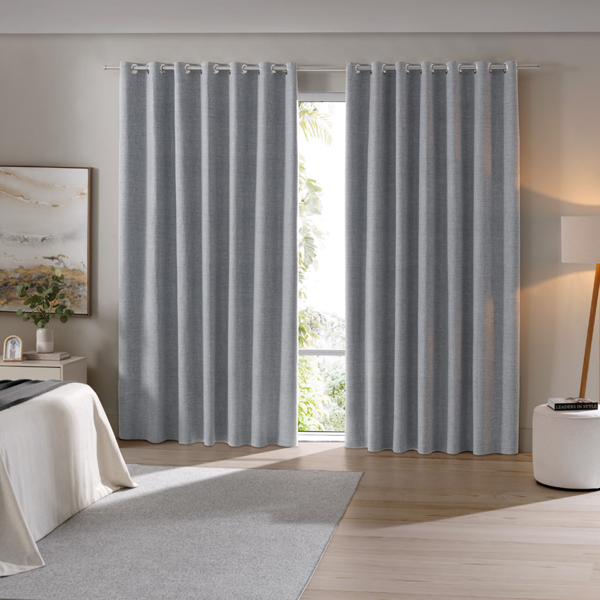 Possui um visual neutro e sofisticado, combinando facilmente com diversos estilos de decoração. O modelo conta com ilhós cromados, que proporcionam um caimento bonito e facilitam a instalação e o deslizamento no varão.