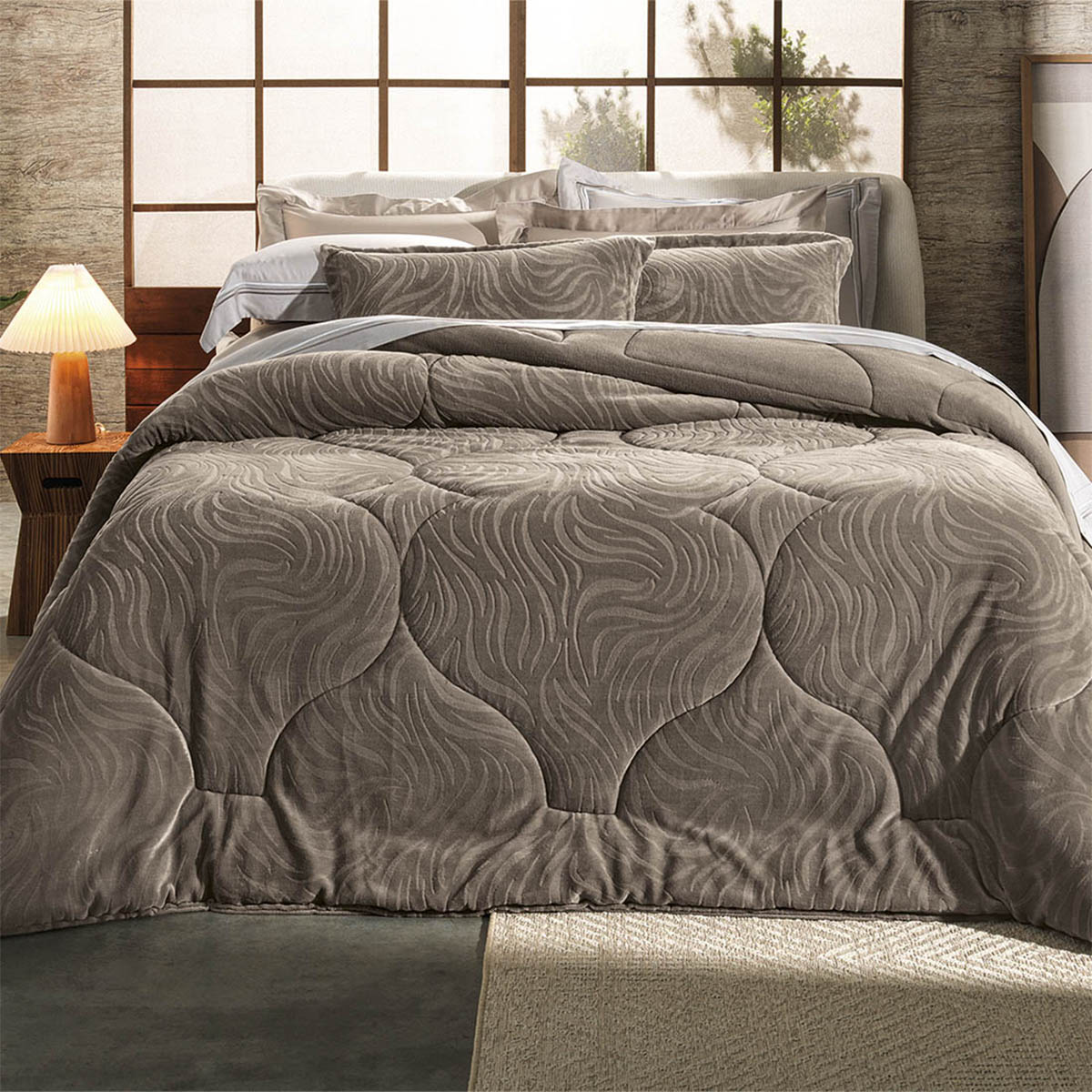 - ResumoNa coleção Blend Elegance, o Edredom e as fronhas Aira se destacam pelas curvas orgânicas em relevo no plush premium, que adicionam profundidade e sofisticação. Com toque macio, aquecimento uniforme e brilho suave, o conjunto oferece conforto ideal para noites frias. Na cor Marrom Sândalo, reforça a elegância natural da linha, unindo textura e aconchego em composições equilibradas.