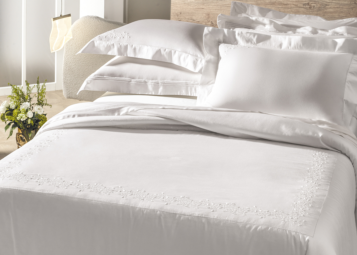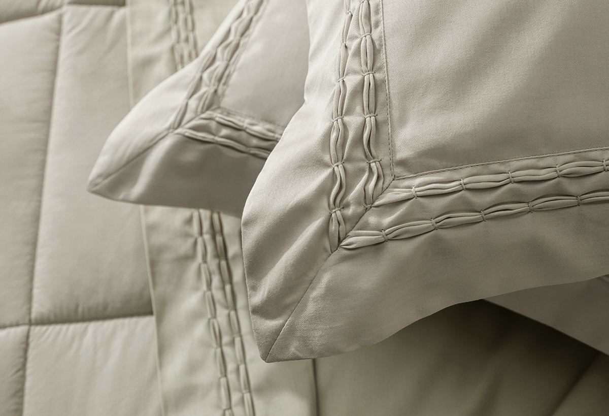 Reflete a essência da Serenidade Sensorial, combinando brilho suave, maciez envolvente e bordados delicados que elevam o bem-estar. Cada detalhe do matelassado ao acabamento refinado cria uma atmosfera de calma e elegância.