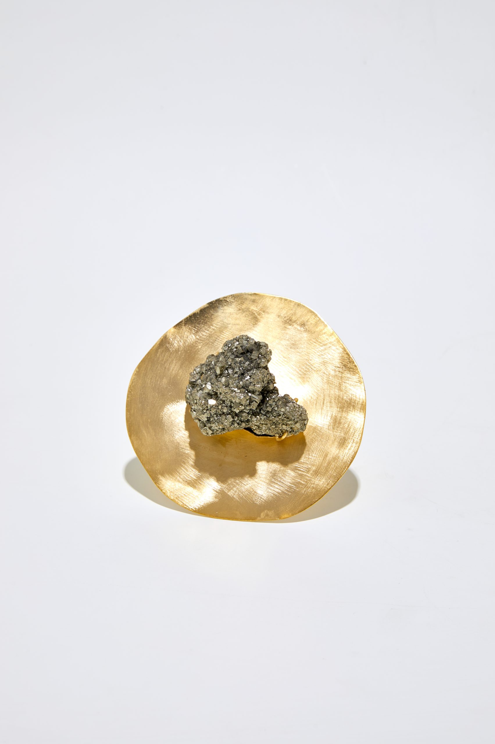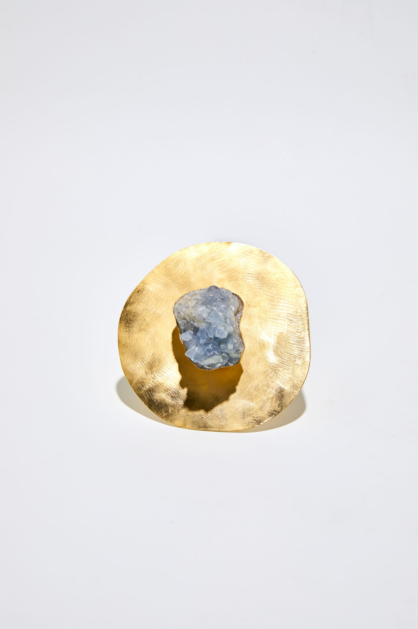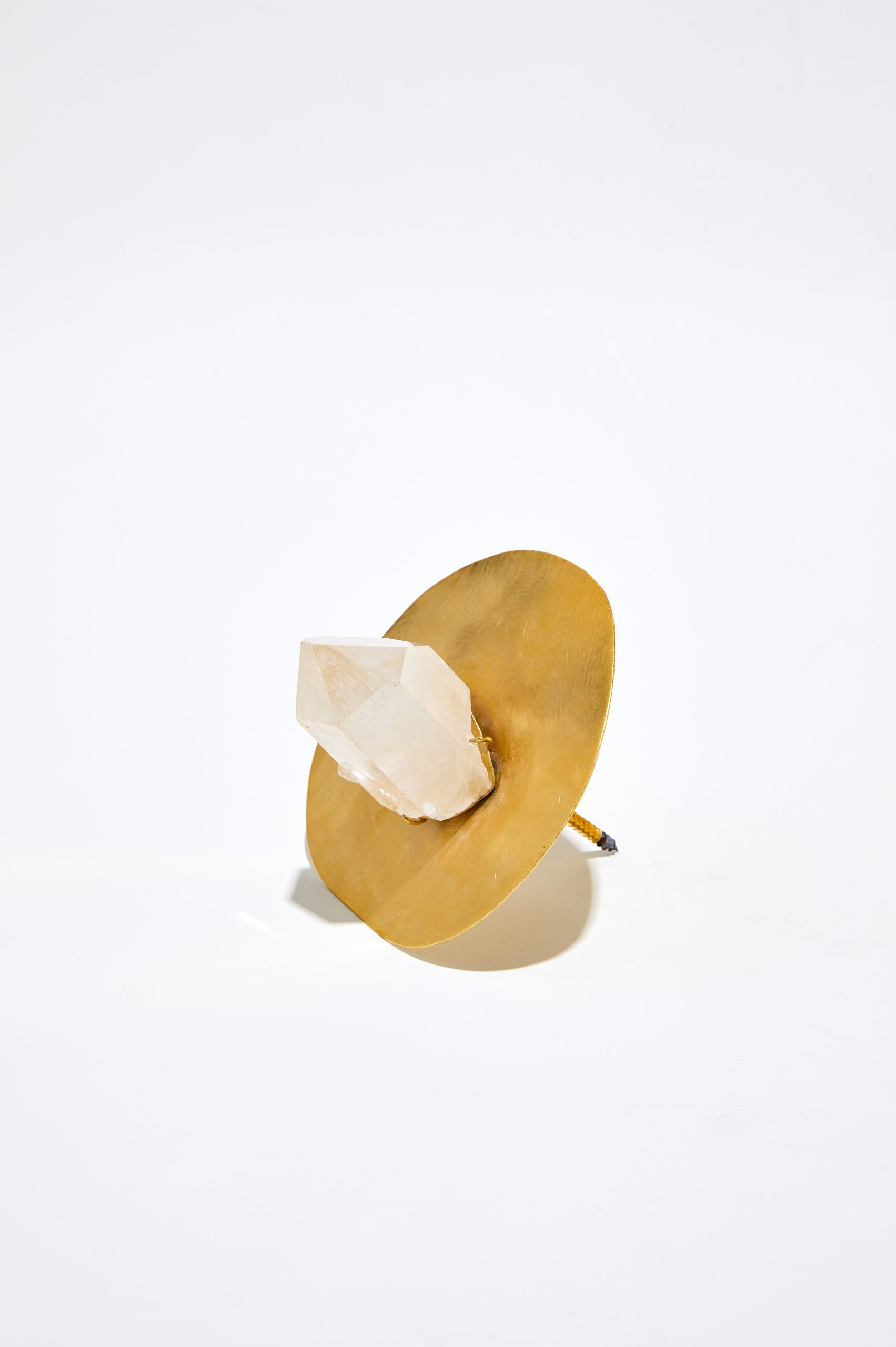 A coleção de Penduradores assinados por Nao Yuasa são produzidos em latão escovado com banho de ouro. Sobre esta base, uma única pedra preciosa ao centro tem presença escultórica e recebe acabamento de joalheria.
