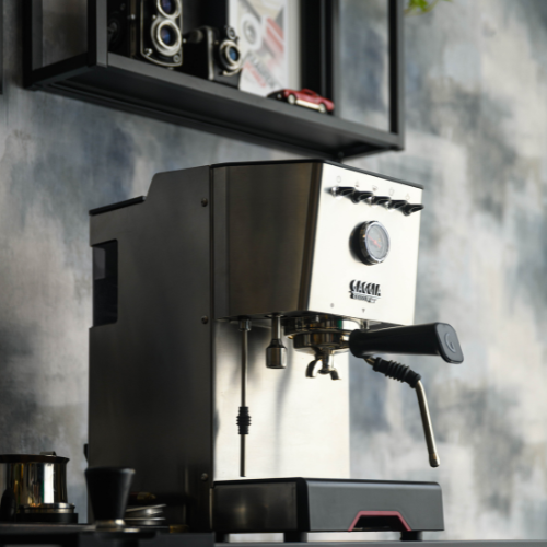 Ela não é apenas bonita — com seu corpo em aço inox e acabamentos em vermelho Gaggia, ela se destaca na cozinha como uma verdadeira peça de design.
