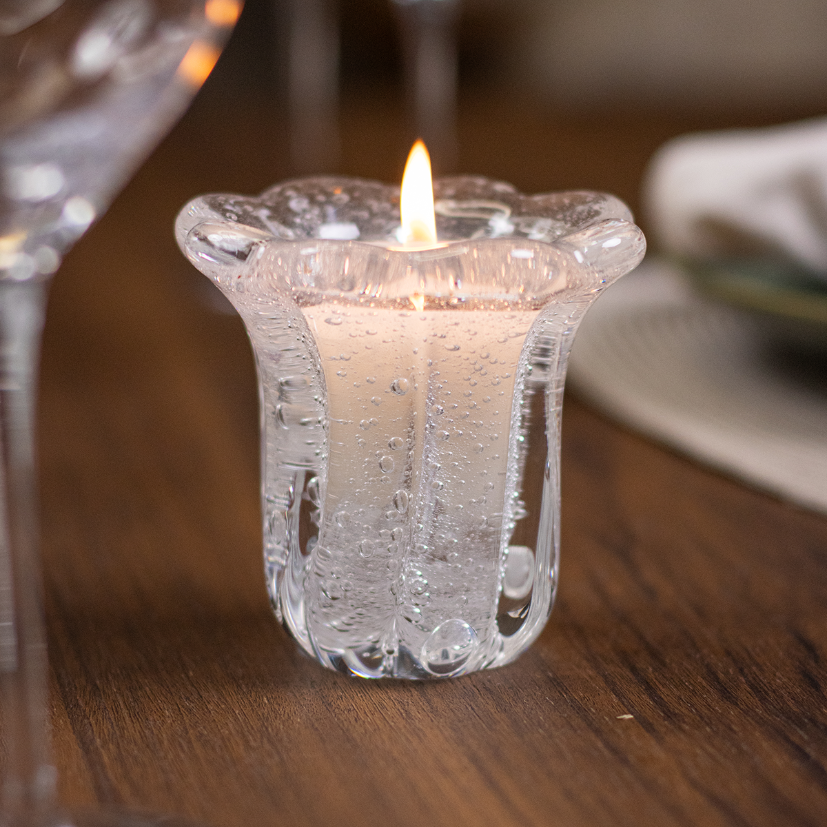 Apresentamos o castiçal Bambino, uma peça exuberante da nossa distinta Coleção Celebrar. Criado com maestria em cristal de Murano, este castiçal combina charme e elegância em um design único. Inspirado pela delicadeza e pela sofisticação, o Bambino apresenta um estilo contemporâneo com detalhes que capturam a luz de maneira encantadora.