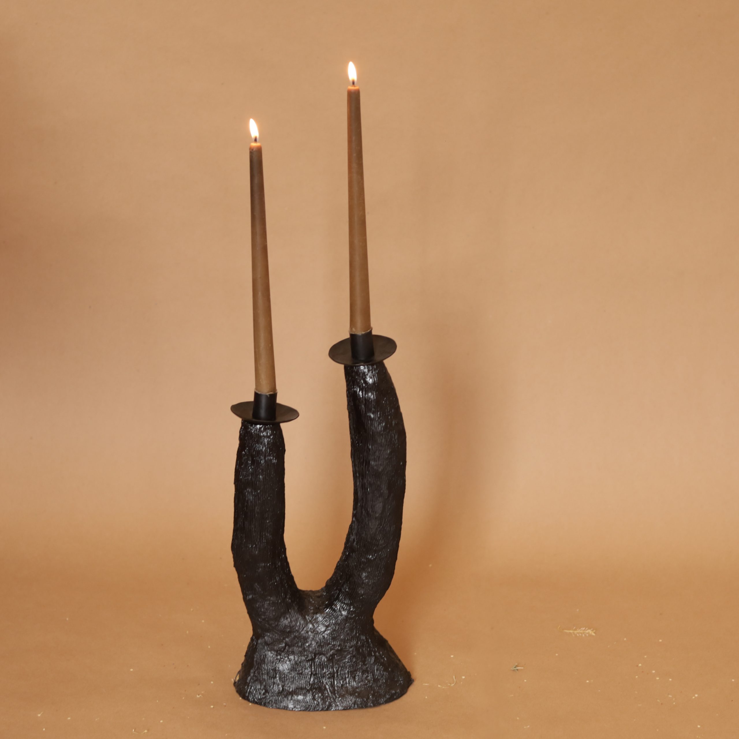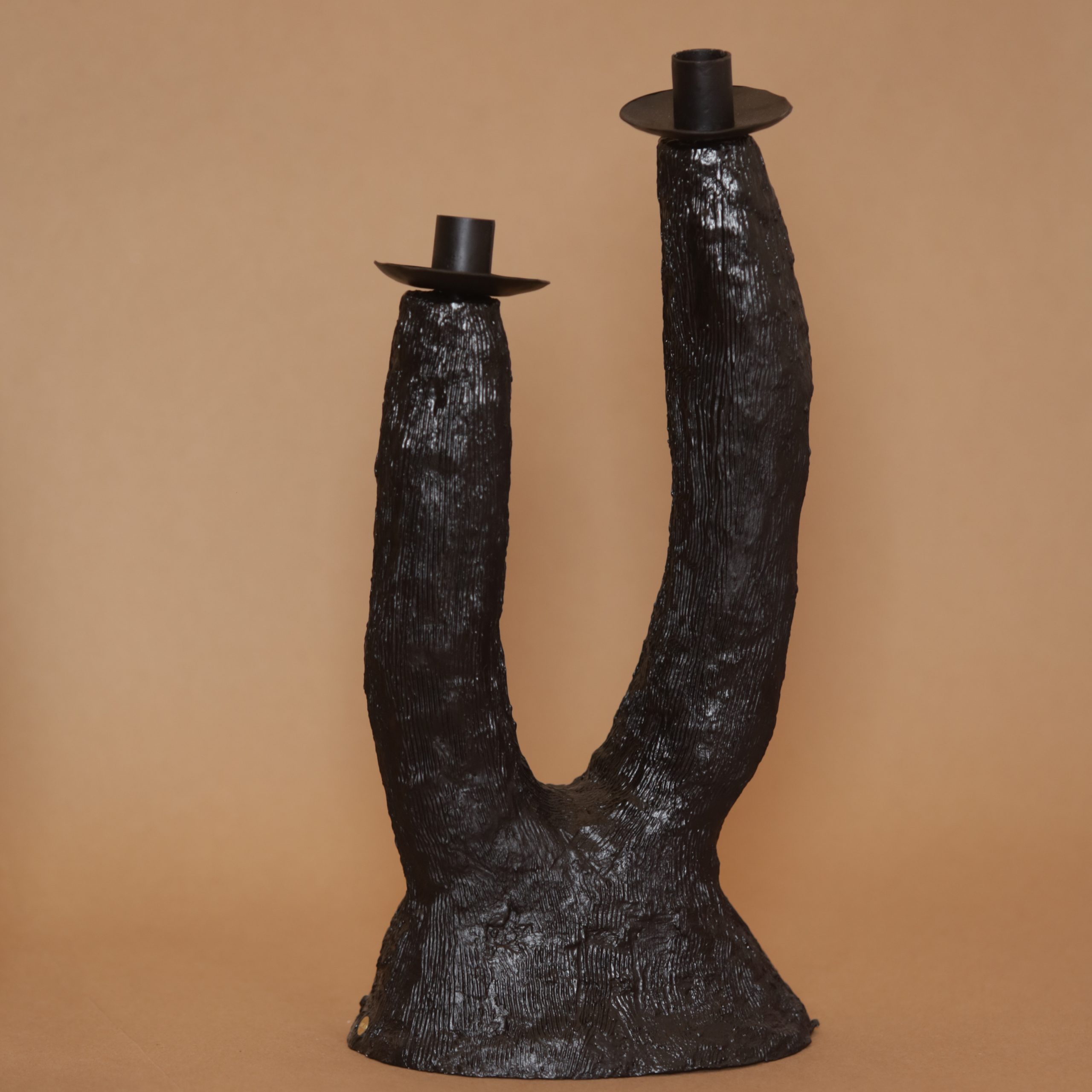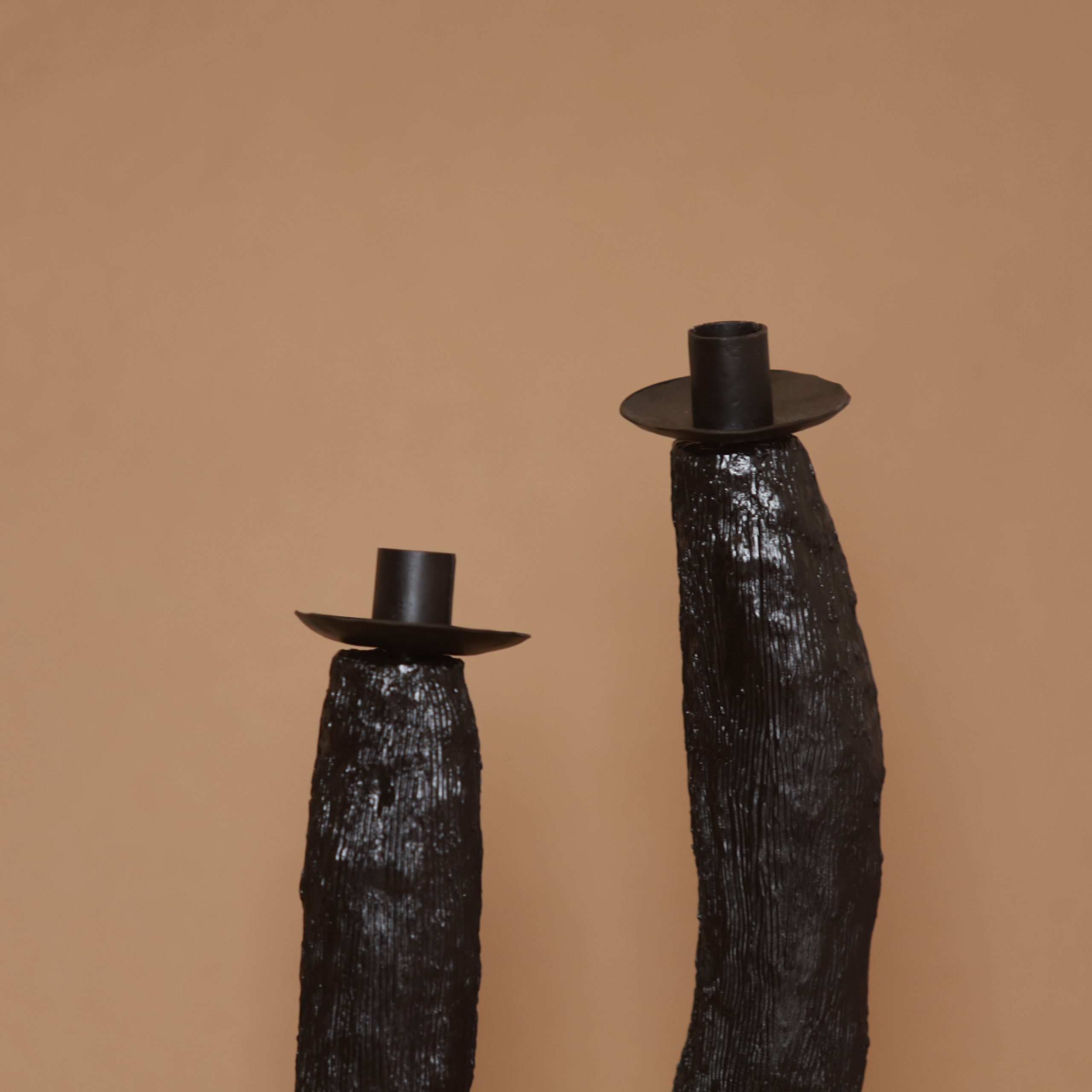 - ResumoCastiçal mediterrâneo da ÓKÁ em cor preta. A sua textura única é um grande diferencial na peça.