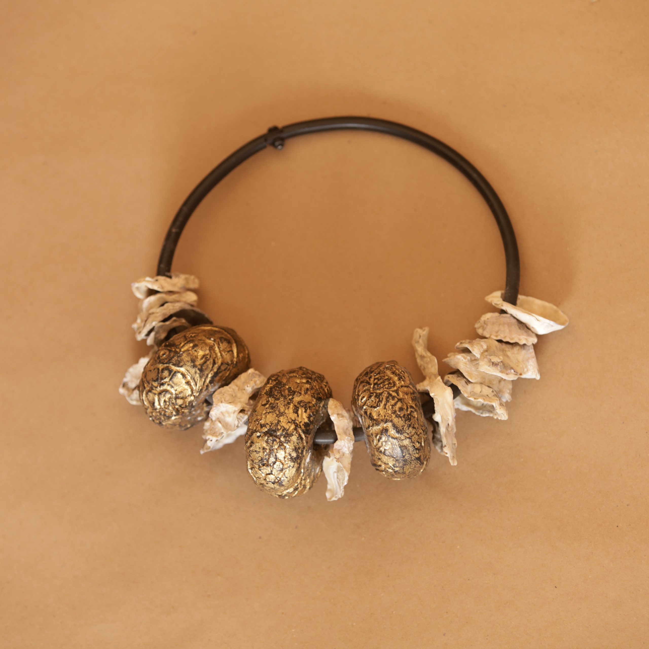 - ResumoO colar de parede Caiçara traz o espírito da vida ao nível do mar para dentro de qualquer ambiente. O objeto consiste em uma argola de metal ornamentada com diversos elementos da vida litorânea, como conchas e boias de pesca com texturas especiais. Peça da Série Restinga.