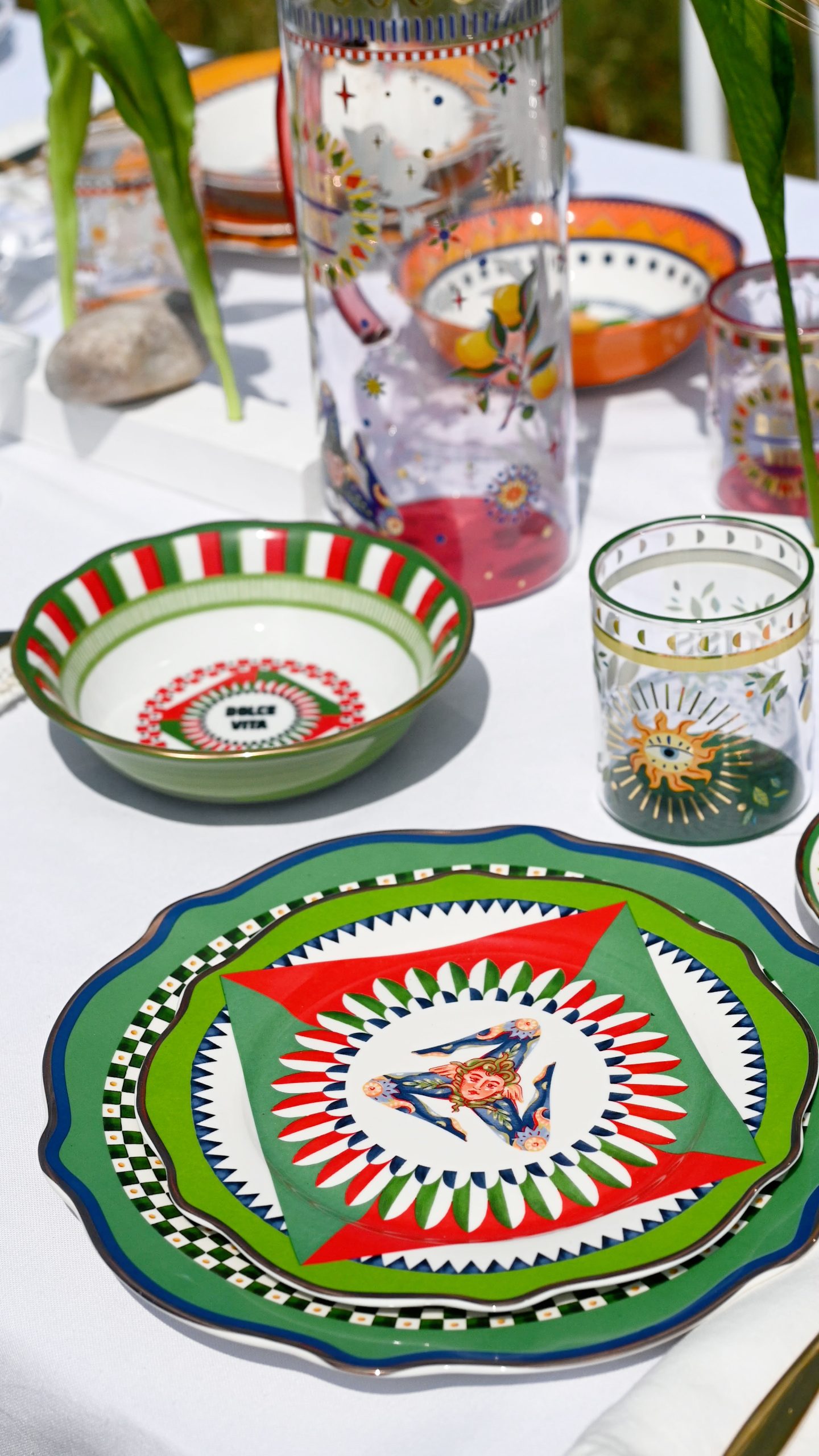 - ResumoPrato em porcelana com design marcante e inspiração mediterrânea, que combina cores vibrantes e grafismos geométricos. O acabamento é refinado, com pintura precisa e brilho elegante, tornando o prato ideal tanto para compor uma mesa cheia de estilo quanto para uso decorativo.