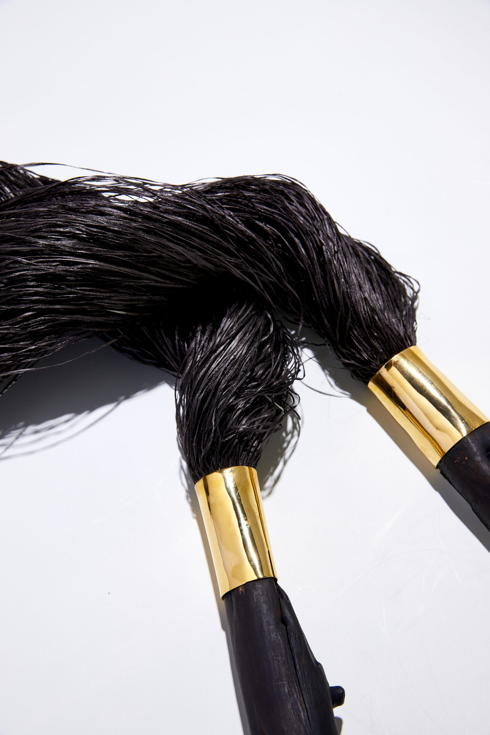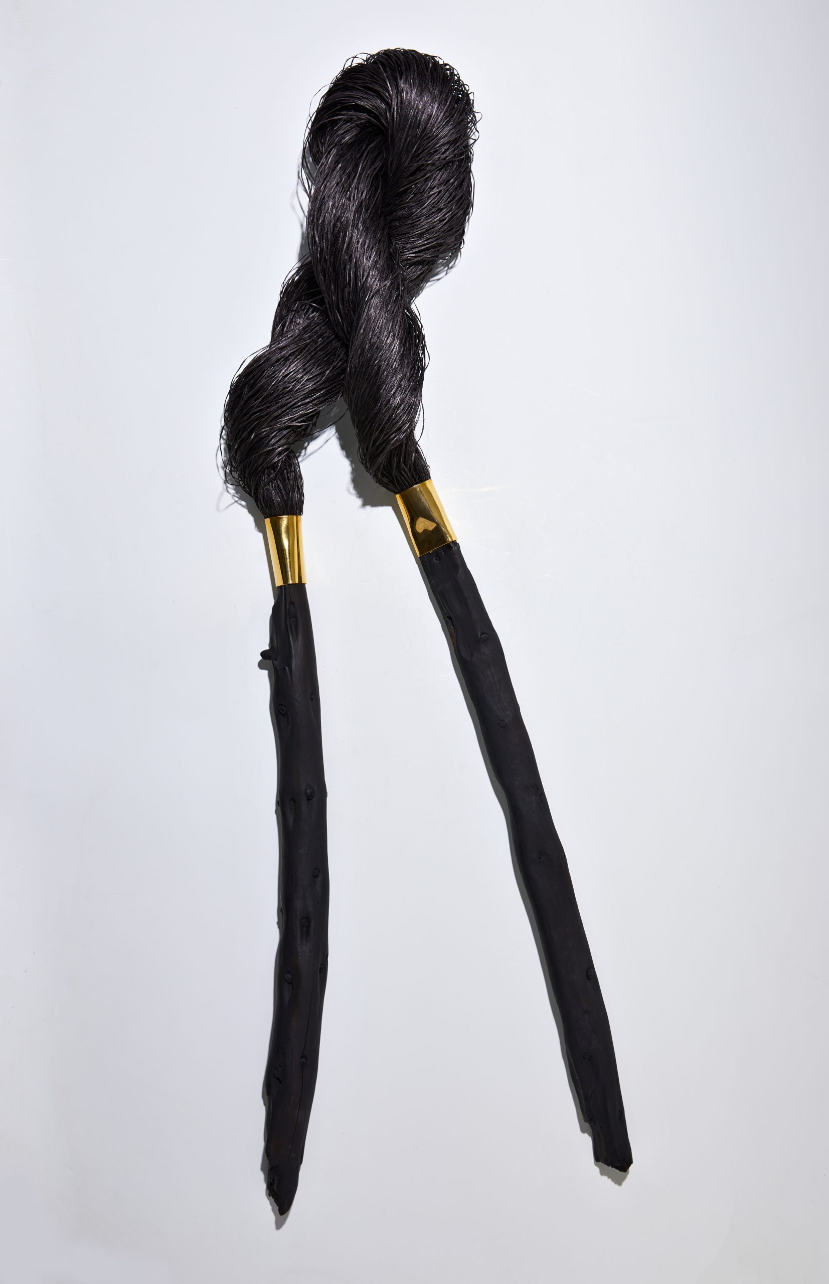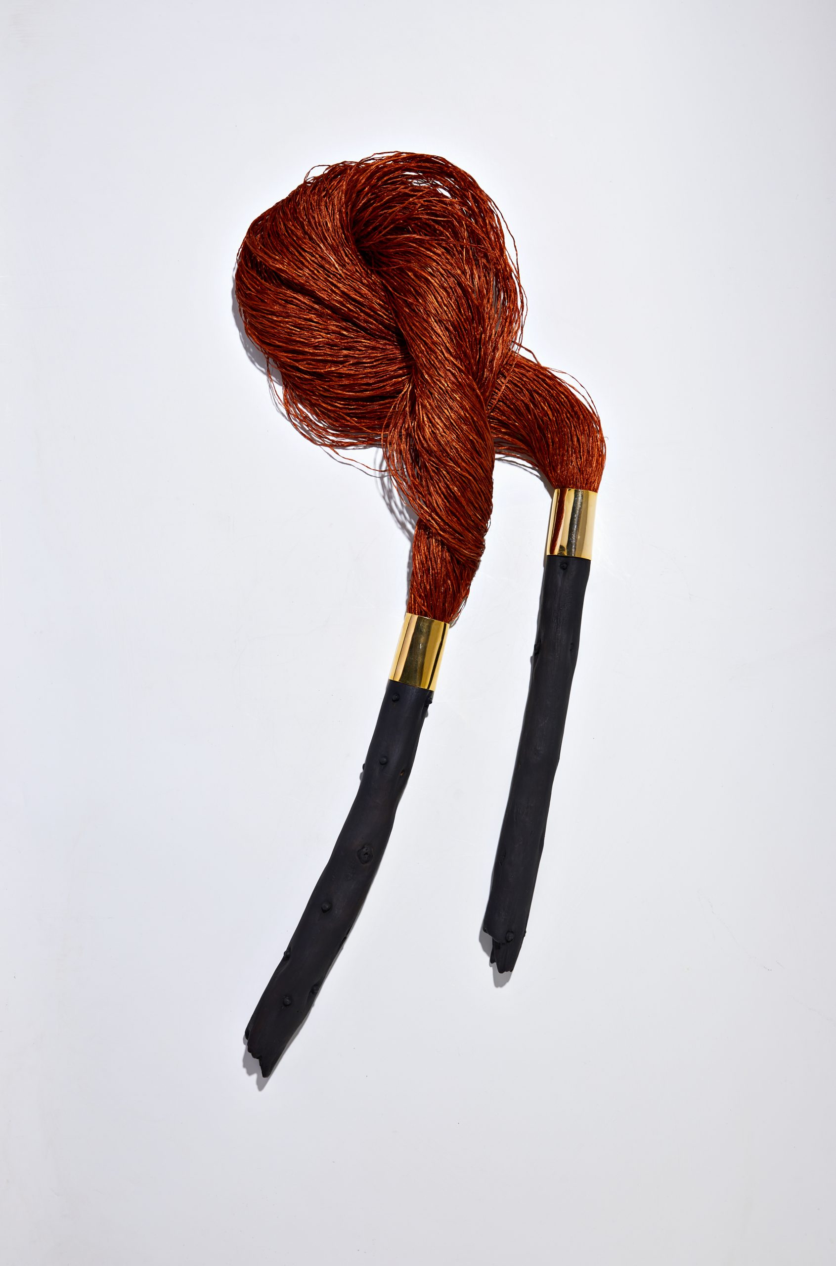 Na Coleção Floresta, fios em 100% palha de seda primitiva tingida naturalmente se conectam aos galhos de araucária. A técnica tradicional japonesa de preservação da madeira, shou sugi ban junto ao acabamento banhado a ouro a partir de técnicas de joalheria, resulta em objetos simbólicos e elegantes.
