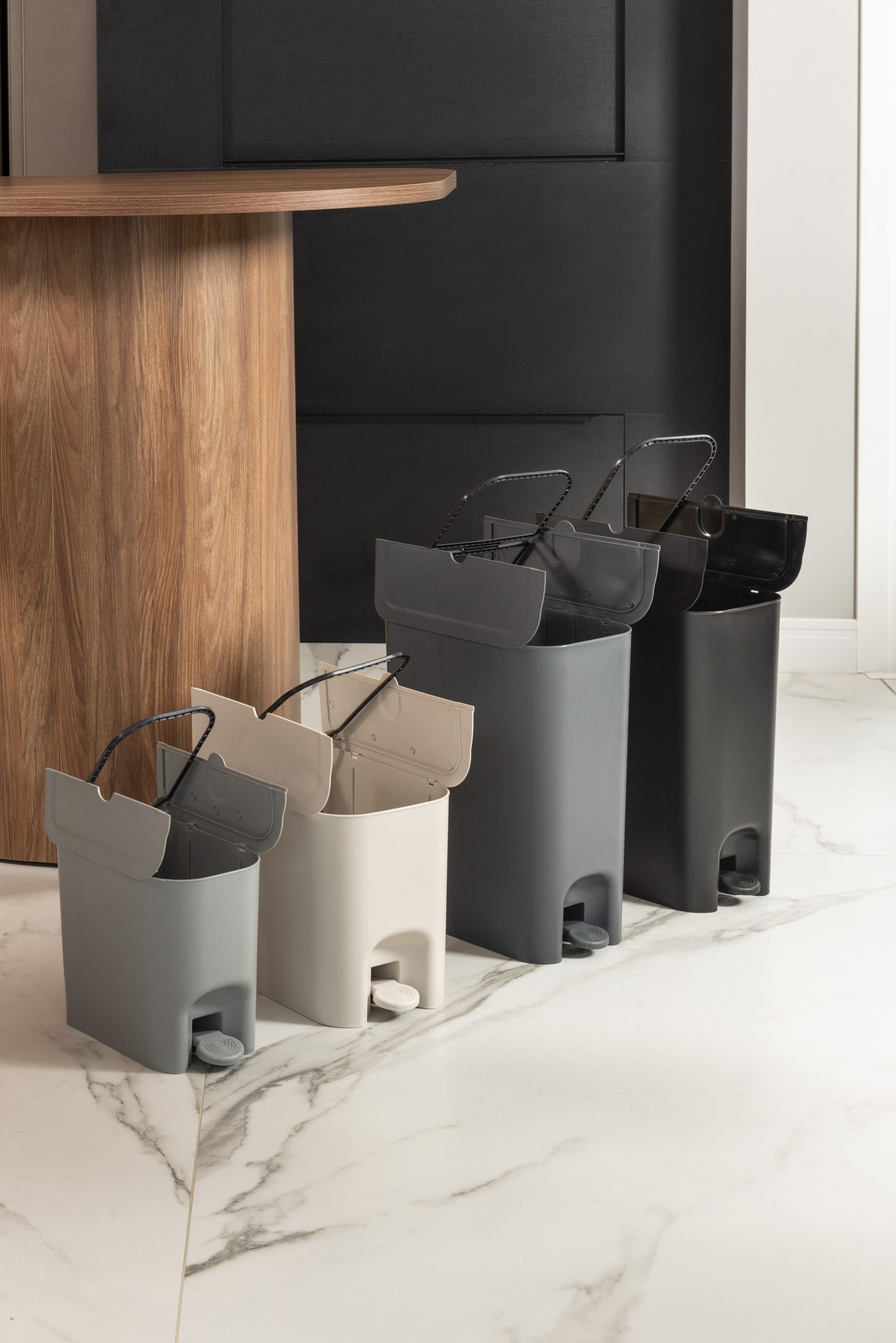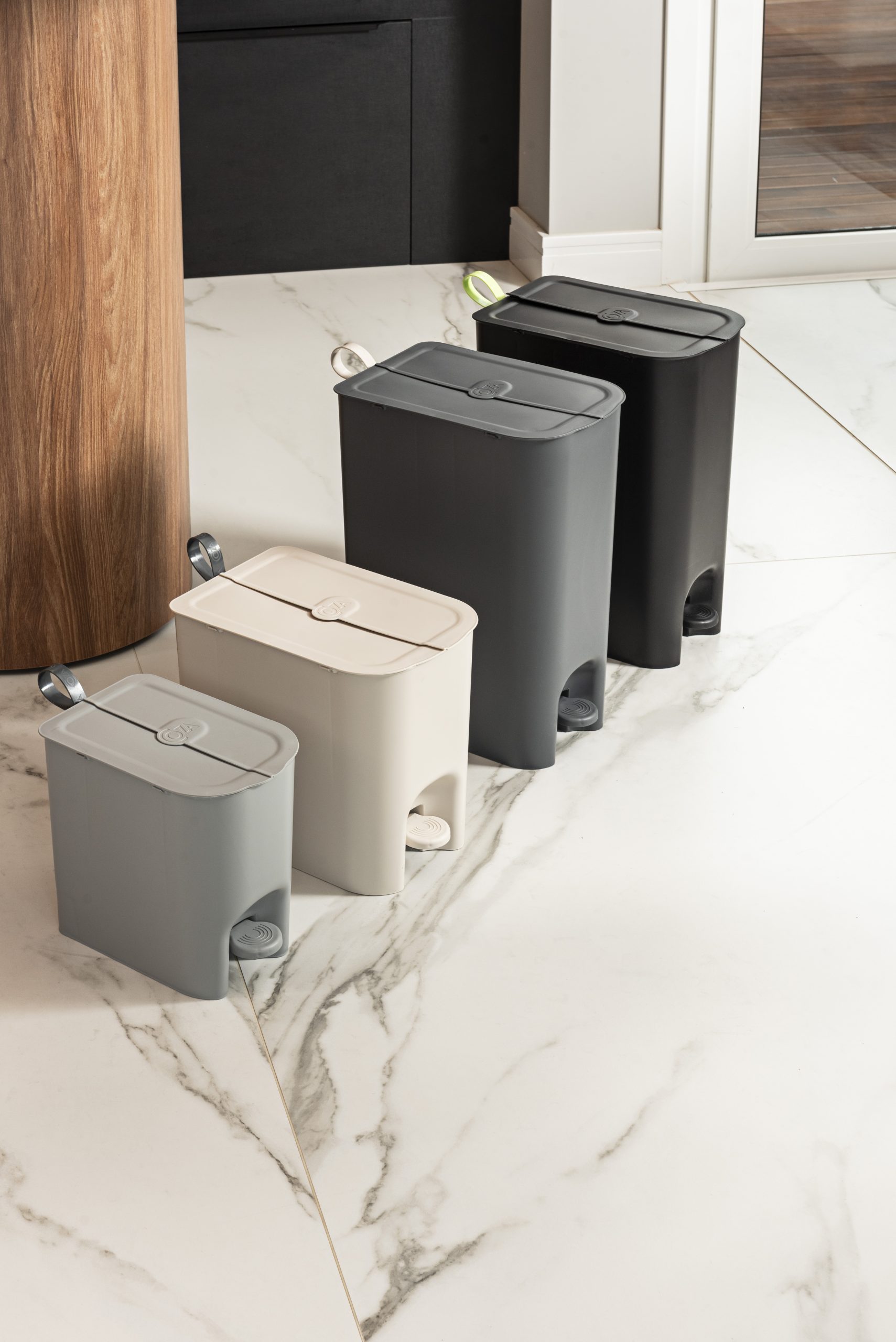 Disponível em 4 tamanhos (6L, 12L, 20L e 10+10L) e 5 cores, adaptando-se a cozinhas, lavanderias, escritórios e áreas de uso comum.