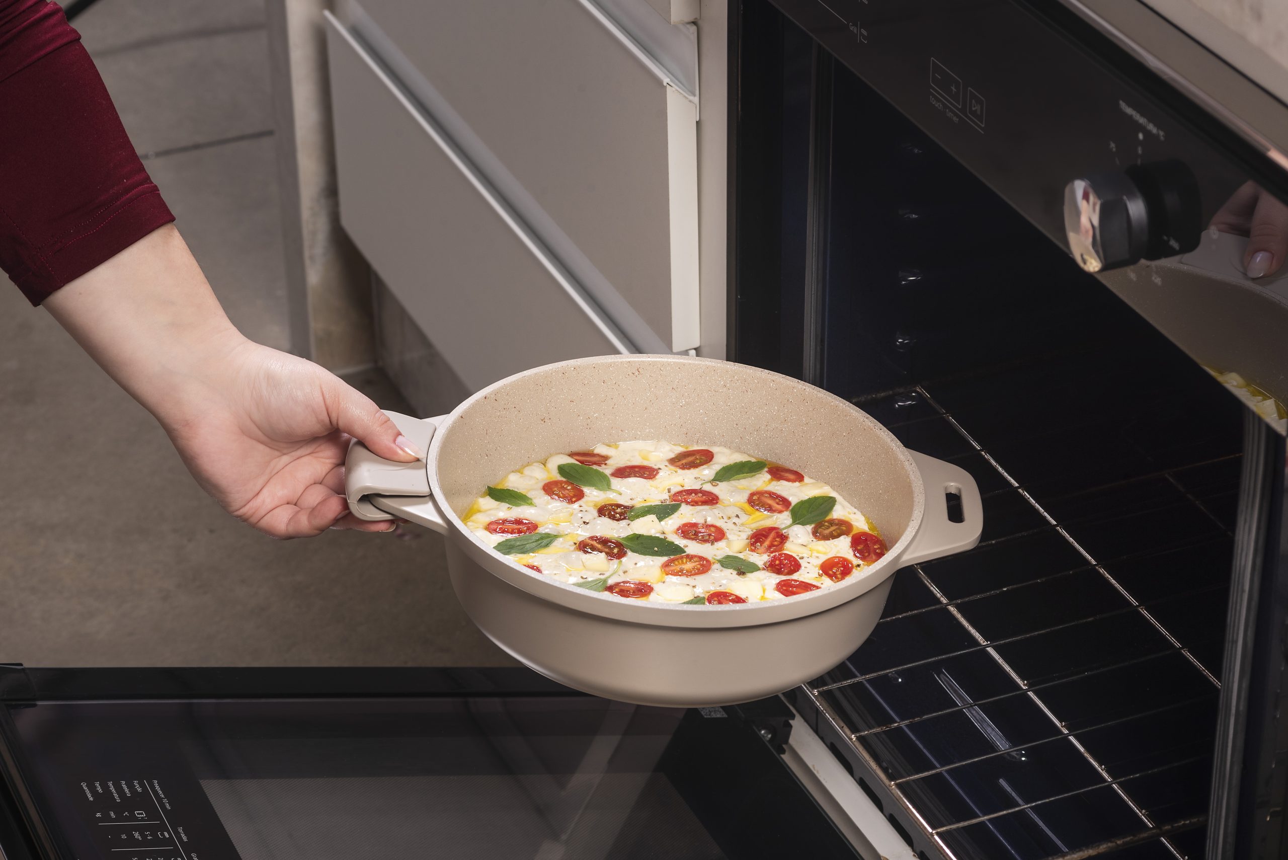 O sistema empilhável com cabo removível otimiza espaço e oferece máxima versatilidade. Com fundo de indução, é compatível com todos os tipos de fogão, inclusive indução, e pode ir ao forno (sem o cabo).