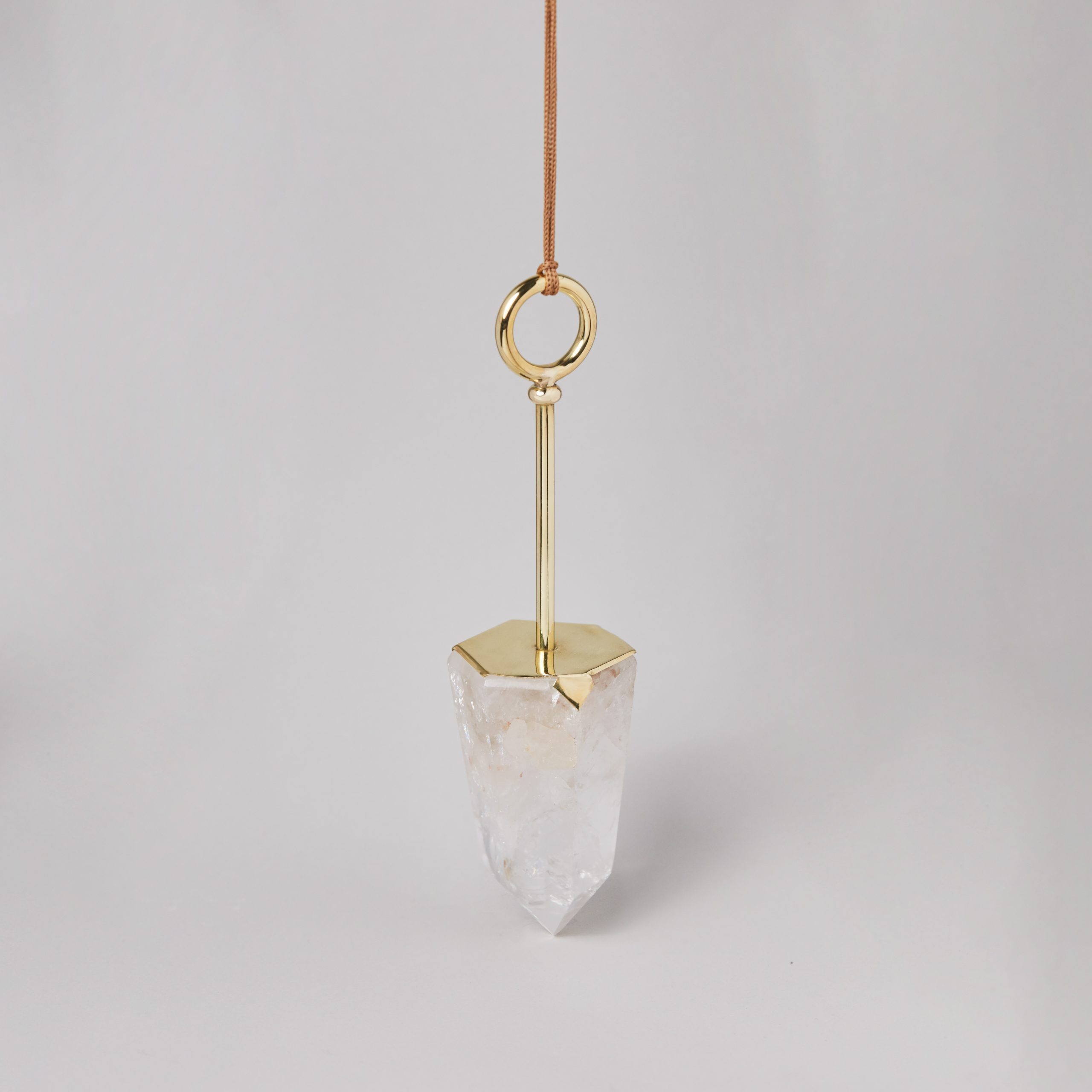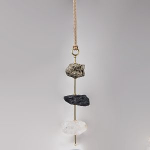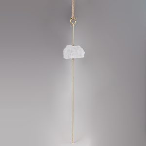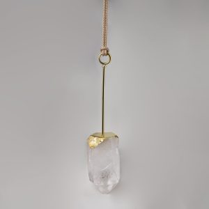Pendente de parede feito em latão com banho de ouro e ponta de Quartzo Branco bruto.