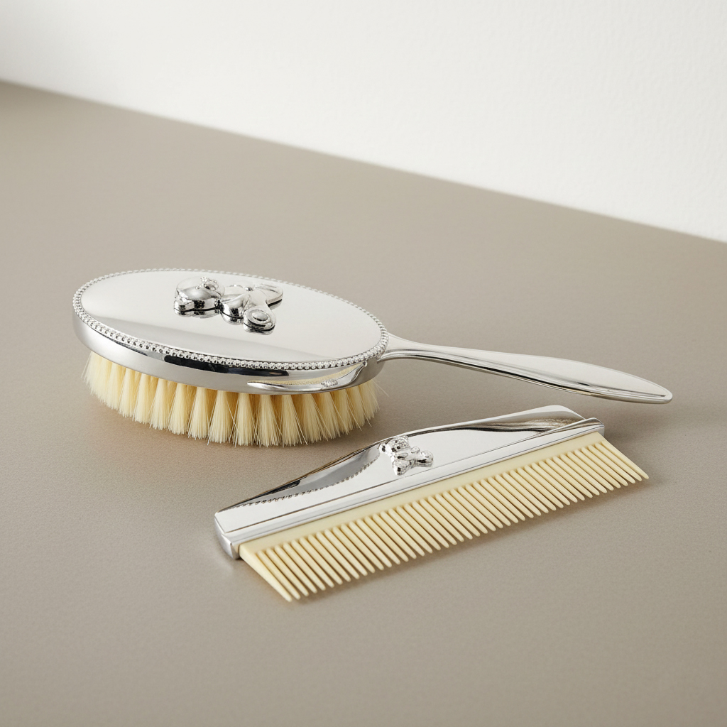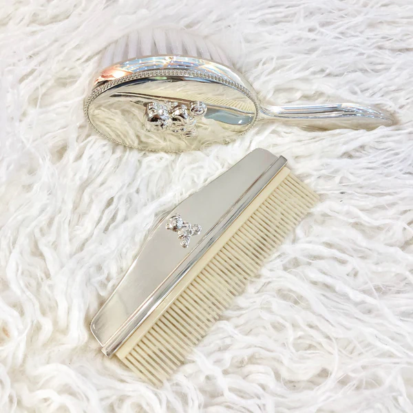• ResumoConjunto pente e escova em silver plate.
