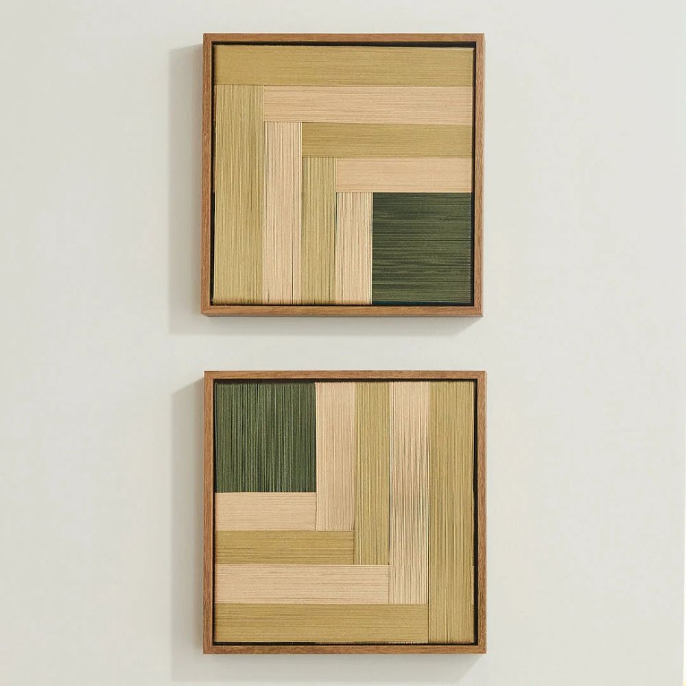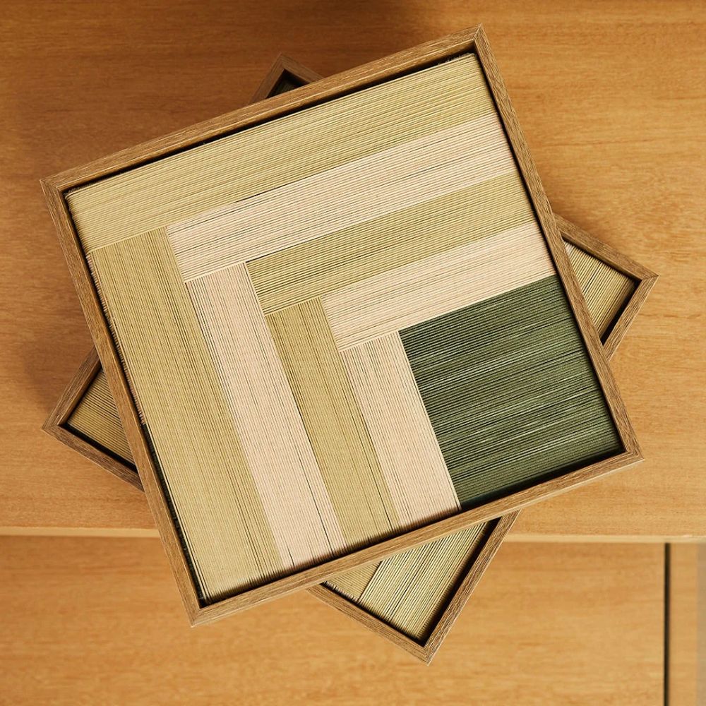 O Quadro Planos Cactos é onde técnica e sensibilidade se encontram. Com padronagens lineares sobrepostas, feitas à mão com fios de algodão, ele traz uma superfície rica em textura, movimento e profundidade.