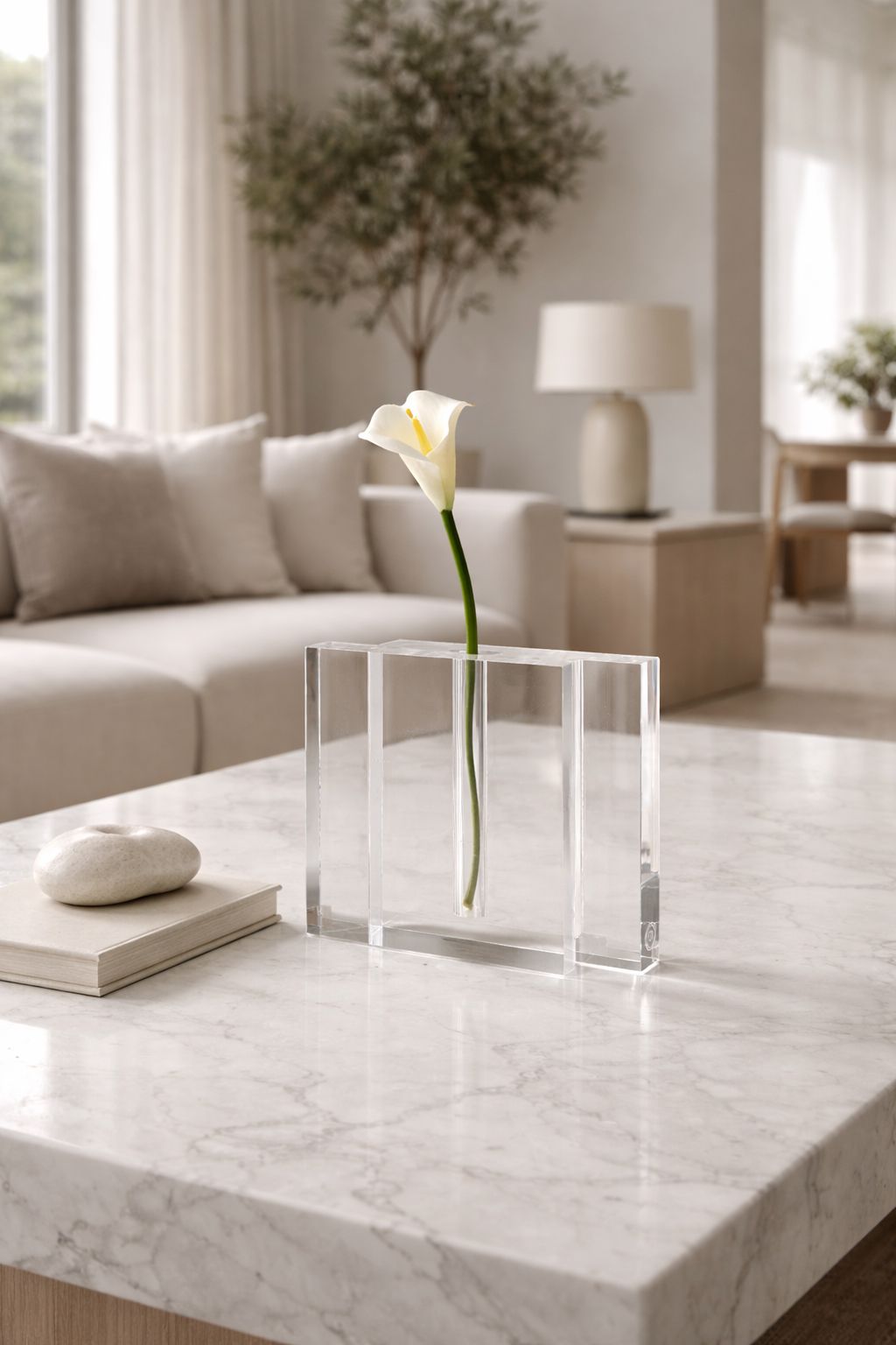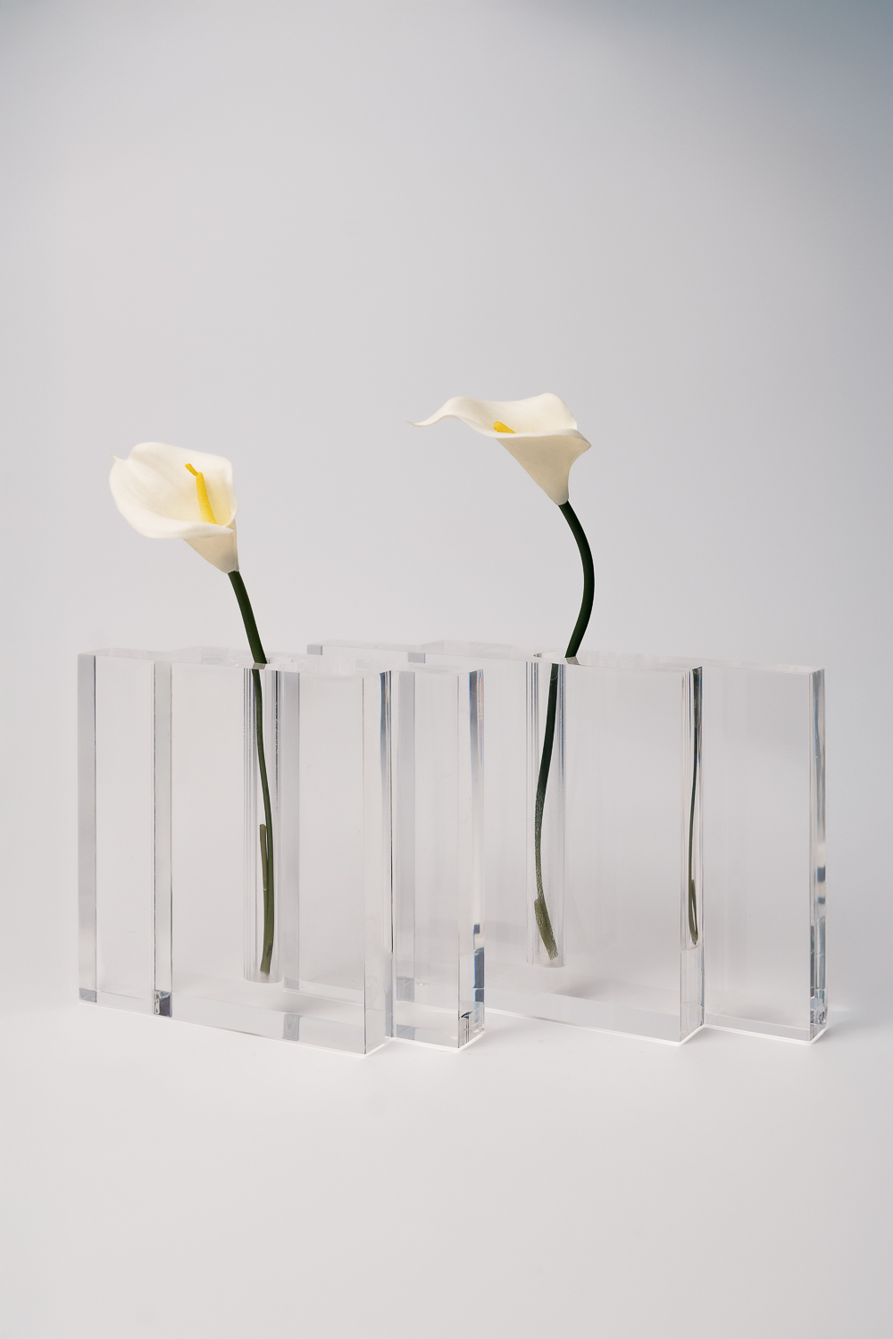 O Vaso Potel é a expressão do design minimalista em sua forma mais pura. Confeccionado em acrílico transparente, valoriza a leveza, a luz e a verticalidade, permitindo que a flor seja o verdadeiro destaque da composição. Seu desenho geométrico cria ritmo e sofisticação, integrando-se com naturalidade a diferentes ambientes.