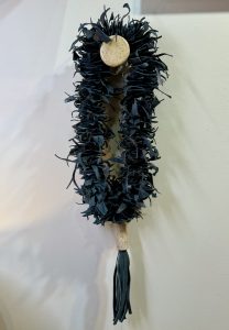 Handmade necklace in black with leather scraps and hook and tips in high-temperature ceramic.